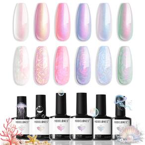 Direção: Passo 1: Prepare e empurre as cutículas para trás. Passo 2: Aplique a camada de base e seque sob lâmpada UV por 1 minuto, luz LED por 30 segundos. Passo 3: Aplique o esmalte de gel colorido em uma aplicação fina. Cure sob lâmpada UV por 2 minutos, luz LED por 30 a 60 segundos. Passo 4: Aplique uma segunda camada e seque sob uma lâmpada UV por 2 minutos, luz LED por 30 a 60 segundos. Aplique a terceira camada se necessário. Passo 5: Aplique a camada superior sem pano e seque sob lâmpada UV por 2 minutos, luz LED por 30 a 60 segundos. Passo 6: Aproveite sua manicure de 14 dias! Como remover: Passo 1: Mergulhe a almofada de algodão com acetona. Passo 2: Enrole cada unha com papel alumínio por aproximadamente 10 minutos, verifique se está pronto, se não deixar mais alguns minutos. Passo 3: Use um bastão laranja ou um empurrador de cutícula para remover o gel amolecido. - NOTA: É normal que o gel fique um pouco pegajoso, para melhor desenhar o efeito da linha. Esmalte de gel sereia edição limitada: este conjunto de esmalte de gel com glitter pérola inclui 6 esmaltes de gel de 7 ml (7 ml) + 1 caneta pontilhada de madeira. modelones bem selecionados 6 lindos tons das cores mais icônicas e criadoras de tendência. Cobertura impecável, este esmalte de gel de pérola com glitter e sua unha ficaria com um acabamento brilhante e mais atraente. Pode obter efeito de rosca espiral com a caneta pontilhada - Alto brilho e 28 dias sem remoção: diga adeus modelones problemas de bolhas de ar e descascar, graças à tecnologia patenteada "Inspire Gel" e um incrível acabamento em gel. Nosso exclusivo pincel fácil de deslizar para aplicação profissional, rápida, uniforme e fácil nas unhas. Passe 3 minutos e longa duração por mais de 28 dias com brilho incomparável sob a aplicação adequada. Com camada superior de gel de base em todo o processo de aplicação. - Saudável e certificado livre de crueldade: o conjunto de esmaltes em gel modelones Trend Shimmer possui 11 ingredientes saudáveis e livres de toxinas, seguros e com baixo odor. Sem ingredientes agressivos ou adesivos que levam a unhas danificadas, antilascas, baixo odor e não irrita a pele. Satisfaça suas diferentes necessidades em qualquer ocasião, você pode fazer suas unhas DIY a qualquer momento! - Fácil aplicação: Suave e fácil de aplicar, este lindo conjunto de esmalte de gel é adequado para todos os tipos de unhas, fácil o suficiente para iniciantes criar qualquer arte de unha. Perfeito para encontros, festas ou atividades como atividades esportivas, festivais e aniversários! - Cuidado com você: Este esmalte de gel rosa roxo e branco pode causar uma reação alérgica por contato com a pele em casos raros. Faça um teste antes de usá-lo para verificar qualquer reação.