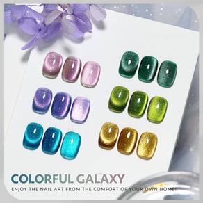 GAOY Conjunto de esmalte de gel olho de gato com glitter com ímã galáxia colorida para olho de gato holográfico, manicure em gel de salão e arte de unhas, faça você mesmo em casa - Glitter Cat Eye: use o ímã para criar o padrão desejado antes de curar. Aplique a camada superior de gel para um acabamento deslumbrante e brilhante. Aqueça no inverno para reduzir a espessura. - O pacote inclui: 6 cores de esmalte de gel de 7,3 ml cada + ímã olho de gato. Conjunto de unhas de gel profissional para desfrutar da arte das unhas no conforto da sua própria casa! - Fácil de usar: Cure com luz UV por 60s até secar completamente. - Longa duração: até 4 semanas se aplicada adequadamente camada de base e camada superior. - Dicas: lustre levemente a cama das unhas antes de aplicar para evitar descascar cedo.