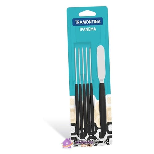 Conjunto de Espátulas para Manteiga Tramontina Ipanema com Lâminas em Aço Inox e Cabos de Polipropileno Preto 6 Peças