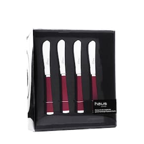 Conjunto De Espátulas Pastry 4 Peças Vermelha Haus Traga elegância e inovação para a sua mesa com este Conjunto de Espátulas Pastry. Composto por 4 Espátulas, são perfeitas para serem utilizadas com Patês, ou Geleias. Produzido em Aço Inox e Acrílico, a espátula tem a cor prata com cabo vermelho. Suas medidas individuais são: 15 cm x 1,7 cm 0,8 cm. Marca: Não Informado