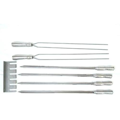 Suporte para espeto de parede em inox é um lindo acessório de decoração e ótimo para organização da área do churrasco e cozinha. Produto de de alta durabilidade. Tem capacidade de no mínimo 6 espetos, dependo do tipo do espeto sua capacidade pode até dobrar pata 12 unidades fotos ilustrativas , junto com espetos para churrasco em inox duplo e simples para utilizar em seus churrascos, produtos em inox com alta durabilidade. Dimensões do porta espeto de parede: peso aprox. : 245g largura: 24 cm profundidade: 8cm altura: 3cm profundidade da cavidade: 5,50cm largura cavidade: 1,2 material: aço inox 430 polido alto brilho quantidade de aberturas: 6 espaços para espetos conjunto contém: - 1 suporte porta espeto de parede- buchas e parafusos para fixação - 4 espetos simples em inox de 55cm lamina com cabo de madeira revestido de alumínio - 65cm total aprox. - 2 espetos duplo em inox 65cm comprimento total aprox. Marca: Plenitude Industria