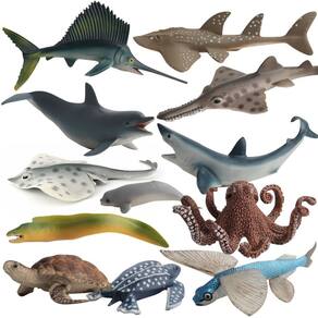 Conjunto de 12 peças de estatuetas de animais marinhos, modelos realistas de criaturas marinhas de PVC, incluindo tubarões, golfinhos, polvos, tartarugas, arraias e muito mais, brinquedos educacionais de vida marinha para crianças Descrição: Material: PVC Tamanho: 1-16 cm Peso: 430 g Características: Figuras de animais oceânicos: inclui um conjunto diversificado de 12 animais marinhos realistas, como tubarões, golfinhos, tartarugas, polvos e arraias, oferecendo um coleção fascinante de modelos de vida marinha. Material de PVC durável: feitas de PVC não tóxico de alta qualidade, essas estatuetas de criaturas oceânicas são projetadas para resistir a anos de jogo e exibição, mantendo detalhes vívidos. Educacionais e divertidos: ideais para ajudar as crianças a aprender sobre a vida marinha, esses números estimulam a curiosidade sobre o oceano e os animais marinhos, tornando o aprendizado agradável e interativo. Perfeitas para brincar e exibir: essas estatuetas de animais marinhos são ótimas para fins educacionais, atividades em sala de aula, festas temáticas ou como decoração inspirada no oceano em quartos infantis ou áreas de recreação. Realistas e detalhadas: as figuras variam de 1 cm a 16 cm de tamanho, com designs intrincados que reproduzem a aparência de animais oceânicos reais, tornando-as perfeitas para coleções com temas da natureza. O que vem na caixa: 12 x Conjunto de estatuetas de animais oceânicos
