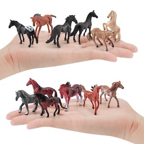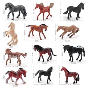 Conjunto de 12 peças de estatuetas de cavalos em miniatura — Modelos realistas de cavalos mundialmente famosos em PVC, incluindo Quarter Horse, Morgan, Mustang e muito mais — Brinquedos e decorações educativas para crianças maiores de 3 anos Descrição: Material: PVC Tamanho: 3,5 a 6,5 cm, consulte a imagem para obter detalhes específicos de tamanho Peso: 70 g Características: Design realista: este conjunto inclui 12 estatuetas de cavalos lindamente feitas, com raças populares mundialmente famosas, como Quarter Horse, Morgan, Mustang, e outros, projetados com detalhes intrincados. Duráveis e seguros: feitos de material de PVC não tóxico de alta qualidade, esses modelos de cavalos são seguros para crianças e construídos para suportar brincadeiras ou exibições diárias. Educacionais e divertidos: perfeitos para ensinar crianças sobre diferentes raças de cavalos, esses números ajudam a promover brincadeiras criativas, reconhecimento de animais e aprendizado interativo. Uso versátil: ideais para ambientes educacionais, decorações de festas ou como parte de uma coleção maior de animais, essas estatuetas de cavalos trazem um toque de elegância equina a qualquer espaço. Perfeitas para crianças a partir de 3 anos: essas estatuetas de cavalos são adequadas para crianças de 3 anos ou mais, o que as torna ótimas para brincadeiras, atividades educacionais e como itens colecionáveis para entusiastas de cavalos. O que vem na caixa: 12 x Conjunto de estatuetas de cavalos em miniatura