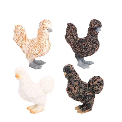 Conjunto de 4 estatuetas de frango realistas, bonecos de animais de fazenda em PVC, modelos realistas de galinhas polonesas, brinquedos de aves para crianças, decorações para casa e jardim, figuras educativas de animais para crianças Descrição: Material: PVC Tamanho: 2-4,5 cm Peso: 50 g Características: Estatuetas de frango realistas: este conjunto inclui 4 estatuetas de frango polonesas lindamente feitas, com detalhes intrincados de penas e designs realistas. Perfeito para amantes de animais, colecionadores e crianças. Material de PVC de alta qualidade: Feitas de PVC durável e ecológico, essas figuras de frango são seguras para crianças de 3 anos ou mais. Eles são projetados para uso duradouro, resistindo ao jogo regular. Brinquedos educativos para animais: esses modelos de frango são ideais para ensinar crianças sobre animais de fazenda e vida selvagem. Um complemento perfeito para brinquedos educacionais, salas de aula ou atividades de aprendizado com temas da natureza. Peças de decoração versáteis: essas estatuetas de frango em miniatura são itens de decoração encantadores para cozinhas, fazendas, jardins ou qualquer espaço onde os amantes de aves apreciem um toque de estilo rústico. Ótimo para colecionadores e crianças: um conjunto fantástico para colecionadores de estatuetas de animais ou como um brinquedo divertido e prático para crianças. Também é um presente delicioso para quem adora animais de fazenda ou quer aprender sobre eles. O que vem na caixa: 4 x Conjunto de estatuetas de frango realistas
