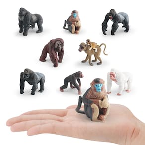 Conjunto de 8 peças de estatuetas de gorila e macaco — Figuras realistas de animais de PVC, incluindo gorila de dorso prateado, babuíno e mandril — Perfeito para brinquedos, displays e decorações educacionais Descrição: Material: PVC Tamanho: 2,6 a 12 cm Peso: 1600 g Características: Figuras de animais realistas: este conjunto inclui 9 estatuetas de animais altamente detalhadas, com vários gorilas e macacos, como gorilas prateados, babuínos e mandíbulas brocas, feitas de material de PVC durável. Perfeitas para exibição: essas figuras de animais realistas são ideais para decorar sua casa, escritório ou sala de aula, adicionando um toque de realismo da vida selvagem a qualquer ambiente. Educativas e divertidas: ótimas para brinquedos infantis, essas figuras incentivam brincadeiras criativas e ensinam as crianças sobre diferentes espécies de primatas e seus comportamentos de uma forma envolvente. Duráveis e seguras: feitas de PVC atóxico e de alta qualidade, essas estatuetas são seguras para crianças de 3 anos ou mais, garantindo horas de diversão e exibição sem preocupações. Ótimas para colecionadores: indispensáveis para colecionadores de estatuetas de animais e entusiastas da vida selvagem, essas estatuetas de primatas adicionam personalidade e variedade a qualquer coleção ou exibição da natureza. O que vem na caixa: 8 x Conjunto de estatuetas de gorila e macaco