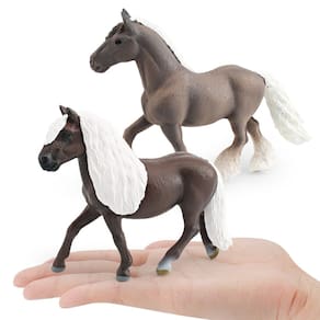 Conjunto de 2 peças de estatuetas realistas de cavalos Shire — Modelos de PVC Black Forest e Spotted Mare — Figuras e decorações de animais de fazenda para crianças de 3 anos ou mais Descrição: Material: PVC Tamanho: 3,5 a 13 cm Peso: 268 g Características: cavalos realistas da Shire: este conjunto apresenta 2 estatuetas de cavalos Shire lindamente feitas, uma com um impressionante casaco preto da floresta e outra com um design manchado exclusivo, oferecendo detalhes realistas. Duráveis e seguros: feitos de PVC não tóxico e de alta qualidade, esses modelos de cavalos são seguros para crianças e projetados para suportar brincadeiras e uso em telas. Educacionais e divertidos: uma ótima maneira de apresentar às crianças diferentes raças de cavalos, esses números ajudam no reconhecimento dos animais e incentivam brincadeiras criativas. Perfeitos para exibição: sejam utilizados como peças decorativas, brinquedos educativos ou parte de uma coleção de animais de fazenda, esses cavalos adicionam um toque realista a qualquer ambiente ou conjunto de brinquedos. Para crianças a partir de 3 anos: adequadas para crianças de 3 anos ou mais, essas estatuetas são uma adição maravilhosa à coleção de qualquer criança, promovendo a criatividade e o aprendizado interativo. O que vem na caixa: 2 x conjunto realista de estatuetas Shire Horse