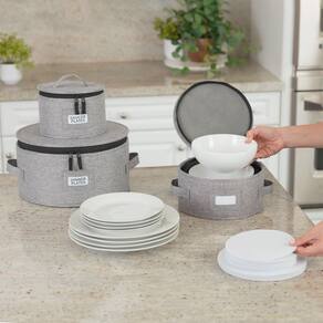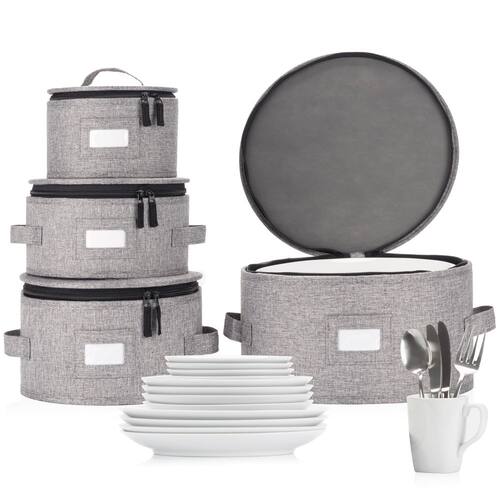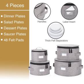 Nossos recipientes de armazenamento de pratos têm um serviço completo para 12, incluindo 48 separadores de placas de feltro para proteção contra lascas e arranhões. As capas rígidas vêm em 4 tamanhos convenientes com cartões de etiqueta para identificar facilmente o conteúdo e o fecho com zíper manterá sua porcelana fina longe de poeira, quebra e pragas. Nossos recipientes de armazenamento de porcelana são um maravilhoso presente de inauguração de casa, anfitriã ou noiva. Use nossos recipientes de armazenamento de porcelana fina para armazenar e proteger seus pratos entre as estações. - Organizador de armazenamento de louça empilhável – O conjunto inclui 4 recipientes de armazenamento de pratos para armazenar um total de 48 pratos: um estojo de 30 cm para 12 pratos de jantar - um estojo de 25 cm para 12 pratos de salada - um estojo de 21,6 cm para 12 pratos ou tigelas de sobremesa e um estojo de 18 cm para 12 aperitivos pratos tizer ou saudar Cers. O conjunto também inclui 48 separadores de placa de feltro para proteção contra lascas e arranhões. - Material de qualidade com proteção rígida – as capas de prato são feitas com parte superior, inferior e laterais resistentes com acolchoamento interno acolchoado para proteção adicional ao armazenar, transportar ou mover seus pratos de porcelana. Todas as capas incluem um suporte de etiqueta para identificar facilmente o conteúdo e fechos com zíper para proteger contra poeira e quebra. - Versatilidade – Perfeito para aninhar pratos em pequenos espaços de armazenamento e armários - no seu trailer - acampamento - gavetas grandes ou pequenas. - SERVIÇO COMPLETO MULTIUSO PARA 12 - Use nossos estojos de armazenamento de porcelana fina para 12 peças de louça - tigelas de vidro - utensílios de cozinha - cerâmica - brinquedos - canecas - copos - armazenamento de pratos - etc. Protetores práticos de armazenamento de porcelana para entretenimento antes e depois, ou sempre que sua preciosa porcelana fina não estiver em uso. - Longa duração e resistente à água – Este recipiente de armazenamento de pratos será o lar perfeito para pratos de Natal, pratos de Ação de Graças ou até mesmo suportes de pratos de papel para uma festa.