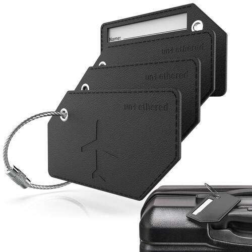 - Mantenha-se organizado e facilmente identificável com nossas etiquetas de identificação de bagagem, perfeitas para viajantes frequentes que precisam de etiquetas de bagagem confiáveis e elegantes para manter suas malas distintas.