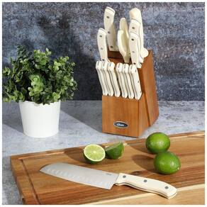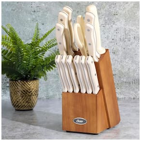 Informações do produto: Cor: Linho Branco Material da lâmina: aço inoxidável Borda da lâmina: bisel único Estilo: conjunto de bloco de faca de talheres Oster Peso do item: 2,68 quilos Número de peças: 14 A máquina de lavar louça é segura: não Material do punho: Madeira Tipo de Construção: Estampado Dimensões da embalagem: 36, x 19, x 16, Número do modelo do item: 123857.14 Marca: Não Informado
