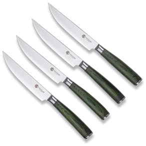Todas as facas para panelas HexClad são lâminas de aço japonês Damasco de 67 camadas com núcleos de corte construídos em aço AUS 10 com dureza Rockwell de 60 ou superior. Nossas facas são feitas utilizando o método Honbazuke de 3 etapas e um tratamento térmico avançado para aumentar a dureza, flexibilidade e resistência à corrosão. O conjunto de facas essenciais para cozinha HexClad de 6 peças apresenta um cabo pakkawood de alta qualidade ergonomicamente projetado com tecnologia anti encolhimento para desempenho de longo prazo na cozinha. Com os devidos cuidados, as facas HexClad durarão gerações. Blocos de faca magnéticos permitem zenamento sem danos. Por favor, não use a máquina de lavar louça para limpar sua faca recomenda se lavar as mãos com afiação frequente Marca: Não Informado
