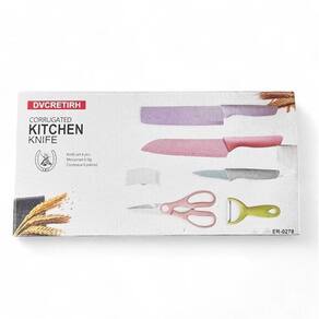 Conjunto de Facas Coloridas com 6 Peças Tesoura Ralador Conheça o Jogo de Facas 6 Peças Este conjunto prático e versátil traz facas de alta qualidade que serão suas melhores aliadas na rotina culinária, permitindo cortes precisos e confiáveis em carnes, legumes, frutas e muito mais. Com um facão pequeno ideal para cortes mais detalhados, e a faca do chef com design elegante e lâmina serrilhada, você terá precisão e eficiência ao lidar com os mais variados ingredientes. Inclui ainda uma faca menor para descascar, prática e funcional.