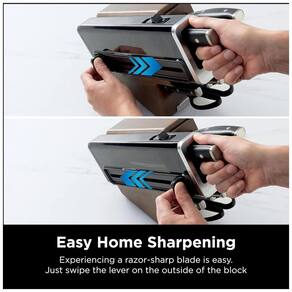 O destaque deste conjunto é o Afiador Embutido com Tecnologia NeverDull, que garante resultados de afiação profissional e mantém as lâminas afiadas como novas. O afiador é fácil de usar, com uma roda de afiação dinâmica que restaura a borda da sua faca para uma nitidez superior em segundos.