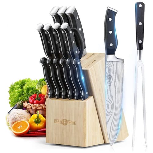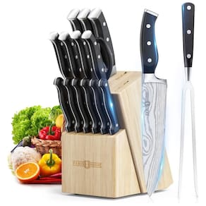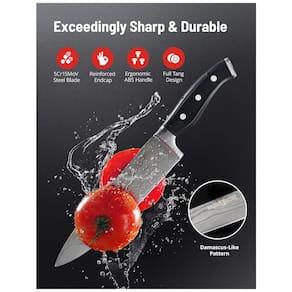 Aço inoxidável 5CR15MOV de alto carbono Nitidez de longa duração: A lâmina de aço inoxidável de alto carbono premium possui precisão, corte rápido e nitidez duradoura, a borda extremamente afiada passa facilmente por ingredientes difíceis com um ângulo de corte nítido para facilitar o preparo da refeição Durável e robusto: O conjunto de facas de cozinha garante robustez excepcional, longevidade, resistência ao desgaste e resistência à corrosão, cada lâmina, forjada em aço 5Cr15MoV de alto carbono, torna a incrivelmente à prova de ferrugem, resistente à corrosão e fácil de limpar Marca: Não Informado