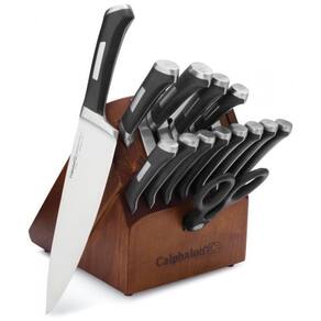 Afiadores de cerâmica embutidos afiam facas automaticamente a cada uso. Aço alemão totalmente forjado, de alto carbono e sem manchas. Facas para bife feitas de aço asiático estampado Alças rotuladas para fácil identificação no bloco. Full tang design para força e equilíbrio Marca: Não Informado