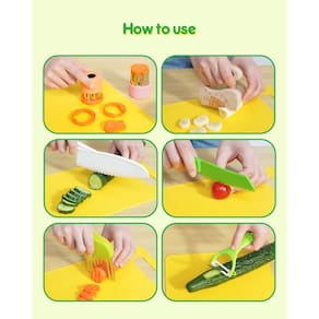 Conjunto de facas de cozinha infantis, 11 peças de utensílios de cozinha Montessori para cozinhar de verdade para crianças pequenas, inclui facas infantis de plástico e madeira, cortador de rugas, cortador de sanduíches, descascador e tábua de cortar para presente de aniversário — [Conteúdo rico] Nosso conjunto de facas de cozinha para crianças contém uma variedade de utensílios, como 1 tábua de cortar, 4 facas de plástico e 1 faca de madeira, 1 cortador de rugas, 1 descascador de plástico, e 3* Food Shape Cutters, oferecendo possibilidades infinitas de brincadeiras criativas e aventuras culinárias para pequenos chefs com mais de 3 a 12 anos de idade. - [Materiais seguros e duráveis] Esses utensílios de cozinha para crianças pequenas são fabricados com materiais de alta qualidade e seguros para crianças, garantindo durabilidade e longevidade. Os pais podem ficar tranquilos sabendo que os adereços foram projetados para resistir a brincadeiras entusiasmadas sem risco de prejudicar seus filhos. - [Promove hábitos saudáveis e desenvolvimento de habilidades] Os utensílios de cozinha para crianças pequenas incentivam as crianças a desenvolverem bons hábitos, ao mesmo tempo em que promovem a coordenação olho-mão, a criatividade e as habilidades de resolução de problemas. À medida que se envolvem em cenários culinários fingidos, aprendem sobre a preparação de alimentos e desenvolvem uma maior apreciação por hábitos alimentares saudáveis. - [Adequação versátil] Nosso conjunto de brinquedos de cozinha para crianças é ótimo para uma ampla variedade de atividades, desde cortar frutas, vegetais ou outros alimentos até organizar festas de acampamento fingidas. Seja em ambientes internos ou externos, este conjunto de cozinha foi projetado para despertar imaginação e criatividade em qualquer ambiente. - [Presente ideal para aprendizagem prática e união] O conjunto de ferramentas seguras para crianças não apenas fornece valor educacional, mas também fortalece o vínculo entre crianças e cuidadores. Oferecer de presente um conjunto de cozinha infantil promove momentos de qualidade que passamos juntos, ao mesmo tempo em que incentiva o aprendizado prático e a brincadeira interativa.