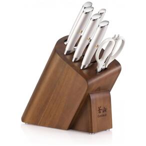 O conjunto de 7 peças inclui: cutelo de vegetais de 17,78 centímetros, faca Santoku de 17,78 centímetros, cutelo de carne de 15,24 centímetros, faca de descascar de 8,89 centímetros, aço de afiar de 20,32 centímetros, tesoura de cozinha desmontável de 22,86 centímetros, bloco de faca de acácia sólida. As facas de design patenteado concentram se em um cabo ergonômico que proporciona uma pegada fácil e confortável. A alça bem equilibrada e confortável combina com bom gosto com o rebite de mosaico único exclusivo. Facas artesanais forjadas em aço alemão X50CrMoV15 de granulação compacta para incrível durabilidade, resistência a manchas e excepcional retenção de borda. Cada lâmina passa por nosso tratamento térmico proprietário ULTRA6, garantindo que cada lâmina mantenha sua força e função. Mão afiada em um ângulo de 16 graus de cada lado. HRC 58 , 2 na escala de dureza Rockwell. Projetado para ajudá lo a realizar uma variedade de tarefas de corte com facilidade e confiança. Certificado NSF. Garantia vitalícia contra defeitos de fabricação. Lave as facas com água morna e um pouco de detergente, enxágue bem e seque com toalha Marca: Não Informado