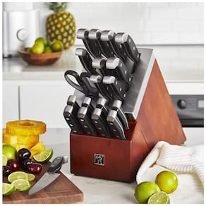 DESIGN DE QUALIDADE Tampa elegante de aço inoxidável escovado e base de madeira de freixo manchada bloco autoafiável AUTOAFIAÇÃO Slots de autoafiação que afiam cada vez que uma faca é removida ou substituída FACAS FACILMENTE COLOCADAS Ranhuras etiquetadas orientam a colocação adequada FABRICAÇÃO DE QUALIDADE Facas fabricadas em aço inoxidável de alta qualidade LÂMINAS DURÁVEIS A construção da lâmina estampada com precisão em peça única proporciona durabilidade CORTE SEM FADIGA A alça tradicional de rebite triplo oferece equilíbrio e é curvada para maior conforto Marca: Não Informado