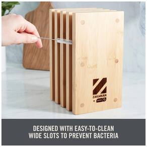 Este conjunto de blocos de facas de 11 peças Zakarian by Dash inclui todas as facas de que sua cozinha precisa, bem como um bloco de facas magnético para segurá las. AÇO ALEMÃO DE ALTA QUALIDADE As facas apresentam lâminas full tang feitas de aço alemão para maior durabilidade e corte. O aço resistente à corrosão é mais forte e mais durável do que outros materiais, resistindo a lascas e quebras e mantém a nitidez ao longo do tempo. CABO DE REBITE TRIPLO Prende com segurança a lâmina ao cabo para maior durabilidade e estabilidade. FÁCIL DE LIMPAR As ripas no Knife Block facilitam a limpeza do Knife Block. FACAS SEGURA PARA MÁQUINAS DE LAVAR LOUÇA Recomenda se lavar à mão para prolongar a vida útil das facas Marca: Não Informado