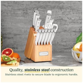 DESEMPENHO SUPERIOR Os talheres de rebite triplo forjado clássico da Cuisinart possuem lâminas de aço inoxidável de alto carbono superiores para precisão e exatidão. CONTROLE TOTAL Almofada de segurança extra larga durável para estabilidade e controle perfeitos. BEM CONSTRUÍDO Rebites de aço inoxidável para prender a lâmina full tang ao cabo ergonomicamente projetado Marca: Não Informado