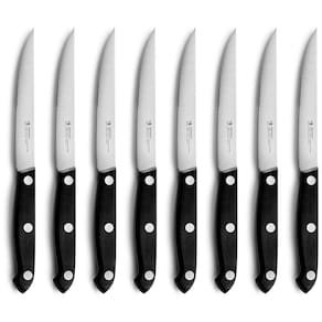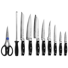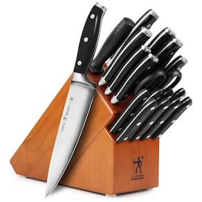 Este conjunto vem completo com um bloco de facas de madeira com um elegante acabamento Cherry. O bloco contém todas as 18 peças, então não haverá espaços vazios. Todas as facas, exceto as facas para bife que são estampadas, apresentam uma lâmina totalmente forjada com espiga cheia, cabo triplo rebitado e tampa de aço inoxidável. A construção forjada e o reforço Zwilling JA Henckels oferecem excelente equilíbrio, bem como ótima retenção de borda e facilidade de reafiação Alça rebitada tripla para maior durabilidade Marca: Não Informado