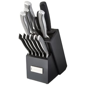 Uma variedade de s estilos inovadores de faca e bloco permitem que os cozinheiros caseiros personalizem sua coleção de talheres Lâminas superiores de aço inoxidável de alto carbono para precisão e exatidão Lâminas retificadas cônicas de precisão que estreitam gradualmente para uma borda extremamente afiada e fina Alças texturizadas tornam o corte fácil e confortável Observe que este conjunto não pode ser lavado na máquina de lavar louça. Garantia de vida Marca: Não Informado