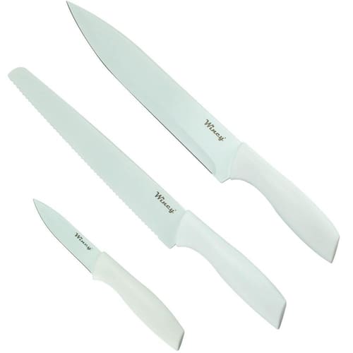Conjunto de Facas Inox Coloridas 3 Peças COR: BRANCO Faqueiro com as facas essenciais para a sua cozinha, confeccionadas em aço inox de alta qualidade possui cabo ergonômico que se encaixa melhor na mão dando mais firmeza na hora do manuseio, leve a alegria das cores para a sua cozinha, 4 opções azul, coral, cinza e rosa.