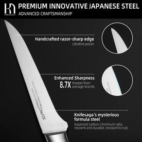 - ?Aço forjado revolucionário NextGen ?Entregue-se à arte da faca de cozinha KnifeSaga, apresentando uma fórmula inovadora de aço. Com artesanato meticuloso, alcançamos uma borda de lâmina excepcional de 10°, garantindo um corte preciso e sem esforço, transformando cada fatia em uma experiência perfeita.