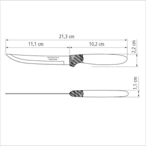Para quem aprecia simplicidade e elegância, o Conjunto de Facas para Churrasco Tramontina Ipanema com Lâminas em Aço Inox e Cabos de Polipropileno Branco 12 Peças é indispensável na sua cozinha! As facas que compõem o conjunto possuem cabos em polipropileno na cor branca, combinando com todos os estilos de composição de mesa e são muito resistentes, pois possuem lâminas em aço inox com tratamento térmico. As facas proporcionam um manuseio seguro e confortável, além de garantir um corte preciso dos alimentos. São ainda fáceis de limpar e podem ser lavadas na máquina de lavar louças. Sua cozinha merece esse conjunto sofisticado e de alta qualidade!OrientaçõesAs lâminas de aço inox tem maior durabilidade do fio devido ao tratamento térmico.