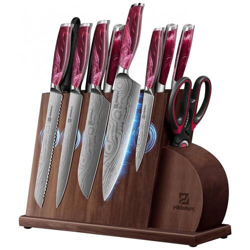 Design de economia de espaço do bloco de facas magnéticas Este bloco de facas é o design patenteado da Piklohas, bonito e prático. O design magnético de dupla face pode acomodar facilmente até 24 peças de ferramentas de corte, mantendo a bancada da cozinha limpa e organizada. O porta facas ajuda você a proteger suas facas verticalmente sem empurrá las para um bloco de madeira, plástico rígido ou metal, o que ajuda a reduzir arranhões na lâmina e danos à borda. Nitidez duradoura e de excelência Profissional, a lâmina com acabamento acetinado tem corte preciso e é finamente afiada. A borda de cada faca de Piklohas é polida à mão e atinge com precisão 15 graus por lado para máxima nitidez, com dureza Rockwell de 562, propriedades extraordinárias e retenção de borda. Essas facas são resistentes o suficiente para mantê las duráveis por vários anos. Fabricação de qualidade, resistente à ferrugem e à corrosão A faca de corte Piklohas é aço de alto carbono X50CrMoV15 alemão de alta qualidade com têmpera de precisão e tratamento de nitrogênio a frio a vácuo. Aumenta drasticamente as características de resistência à corrosão, prevenção de ferrugem e tenacidade, que podem suportar o uso de alta frequência. Com excelente habilidade e tecnologia de ponta, este grande conjunto de facas de cozinha tem sido a melhor escolha de chefs domésticos e profissionais. Punho ergonómico para maior conforto Reforço forjado e espigão completo para uma robustez soberba e criando o equilíbrio perfeito entre a lâmina e o cabo. Nosso design patenteado esta forma única é ergonomicamente trabalhada para maior conforto, controle e agilidade. Tem uma aparência bonita e minimiza a fadiga, dormência dos dedos ou dores após segurá lo continuamente por um longo período de tempo Marca: Não Informado