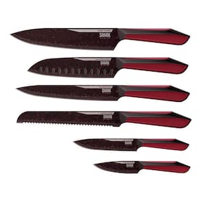 O Conjunto de Facas Special Cut Red ICHEF POLISHOP SHARK SERIES é composto por peças de alta qualidade para o preparo de receitas com cortes precisos e uma apresentação impecável. Com revestimento antiaderente, estas facas foram projetadas para deslizar suavemente, oferecendo firmeza e conforto, preservando a textura e o sabor dos alimentos. O design ergonômico se encaixa perfeitamente ao formato da mão, proporcionando controle total em cada corte. As facas não transferem cheiro nem sabor aos alimentos, mantendo a integridade de cada ingrediente. A Faca do Chef é ideal para cortes perfeitos de carnes, enquanto a Faca Santoku é desenvolvida para cortar peixes e legumes com delicadeza e eficiência, sem que os alimentos grudem na lâmina. A Faca Slicer permite cortes precisos em filés de frango e fatias finas com apenas um movimento. Com a Faca Bread, pães e baguetes são cortados com mínimo esforço, sem amassar ou esfarelar. O kit ainda inclui a Faca Utility, versátil para o uso diário e corte de legumes com precisão, e a Faca Paring, perfeita para descascar frutas de forma rápida e prática.