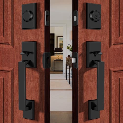 - {Material premium} Feito de liga de zinco premium e aço inoxidável, este conjunto de fechadura de porta frontal dupla proporciona força excepcional e resistência superior à ferrugem e oxidação. Construído para durar anos, garante confiabilidade e desempenho a longo prazo.