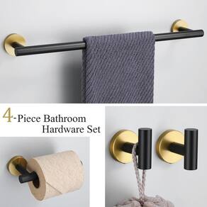 Lairuier Conjunto de ferragens para banheiro - ?Material premium? – Construído em aço inoxidável SUS304 que evita ferrugem e corrosão em seu banheiro para maior durabilidade, o conjunto de ferragens de banheiro de 4 peças oferece fácil acesso e exibição de toalhas, roupão e papel higiênico para seu banheiro. Além disso, a estrutura de metal garante que você obtenha muitos anos de uso deste conjunto de ferragens de banho. - ?Processo de acabamento premier? - O acabamento delicado protege contra corrosão e ferrugem no ambiente úmido e aumenta a durabilidade. O acabamento preto fosco traz beleza insuperável à sua cozinha ou banheiro para garantir uma aparência impecável por anos. Esse recurso significa que você gastará menos tempo e dinheiro em manutenção durante o uso diário. - ?Design minimalista?- Linha simples e construção robusta, acessórios simples para banheiro e orifícios de montagem ocultos redondos exclusivos adicionam um toque de design moderno ao seu banheiro, bordas chanfradas protegem seu corpo de arranhões. - Economia de espaço: o gancho redondo é um local conveniente para guardar roupões de banho ou toalhas no chuveiro, e o suporte de papel higiênico pode fornecer excelente suporte para rolos de papel com um comprimento máximo de 11 cm. A barra de toalha é um local conveniente para guardar toalhas e roupas lavadas, o que pode manter as toalhas secas, limpas e de fácil alcance. - ?Fácil instalação? - Vem com todos os acessórios de montagem necessários, parafusos de aço inoxidável premium e âncoras de alta qualidade que são de boa qualidade e os parafusos são ocultos para dar uma aparência mais limpa, simples e atraente. Disponível em vários acabamentos, você pode montá-lo em qualquer superfície plana, parede de banheiro, paredes de rocha ou porta de madeira.