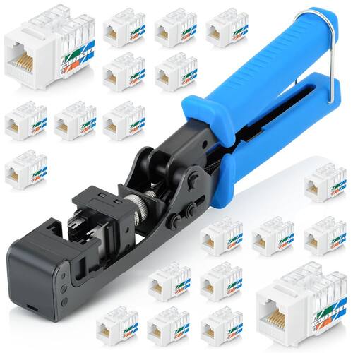 Você está com medo de sua próxima sessão com sua ferramenta de perfuração? Preparar sua próxima rodada de cabos ethernet pode ser uma chatice. Não só causa cãibras nas mãos depois de um tempo, mas parece mais uma tarefa árdua por causa das ferramentas à sua disposição. A maioria das ferramentas de terminação precisa de mais do que apenas uma única tentativa quando você as estiver usando. E, em alguns casos, você ainda terá que refazer seu trabalho porque ele não deu certo na primeira vez. O resultado? Mãos cansadas e desconforto. É aqui que a ferramenta easyJACK é útil! Imagine ser capaz de terminar seus conectores em alguns segundos. É isso que a ferramenta easyJACK pode fazer. Nossa ferramenta de crimpagem pode terminar até oito vezes mais rápido e com mais precisão em comparação com as ferramentas de perfuração padrão que a maioria de nós já não gosta. Isso significa que você não precisa suportar oito vezes como normalmente faria apenas para garantir que você tenha uma conexão segura. Projetada com uma aderência ergonômica, nossa ferramenta de terminação de velocidade evita cãibras e protege suas mãos de ficarem tensas mesmo após várias sessões. Isso significa que você pode usá-lo para trabalhos grandes ou pequenos sem problemas. É projetado para uso com uma mão para que você possa executar sua tarefa em um movimento fluido. Suas lâminas de aço inoxidável podem cortar fios como manteiga e são resistentes e trabalhadas com precisão para garantir longevidade e durabilidade. Ainda não está convencido? Aqui está o que mais você pode esperar com este produto: - Vem com 20 conectores keystone RJ45 - Assenta e corta cabos ethernet suavemente. - Economiza tempo e energia. - Terminação única garantida! Chega de ir e voltar Termine com facilidade como nunca antes. - Compatibilidade – Projetado especificamente para uso SOMENTE com conectores keystone Everest Media com ângulo de 90 graus Cat6, 6a e 5e rj45. Macacos adicionais disponíveis - (B08P1YF41X) - Operação rápida e com um movimento – você só precisa de uma mão para usar esta conveniente ferramenta de perfuração cat6! Ao contrário da ferramenta de perfuração de conector keystone padrão, nossa ferramenta de terminação Keystone easyJACK permite que você corte 8 fios em um movimento suave e fluido - Totalmente personalizável – Nossa ferramenta de macaco keystone easyJACK possui um assento ajustável e cabeça de matriz de profundidade de corte. É facilmente operável com a prática roda de ajuste e permite controle absoluto. - Aderência ergonômica para facilitar o manuseio – a aderência da nossa ferramenta de perfuração keystone tem o tamanho ideal e o ângulo para fornecer grande alavancagem e melhor aderência. Também minimiza a tensão em suas mãos porque requer menos esforço. - Um kit completo de ferramentas de rede – Nossa ferramenta de perfuração keystone vem com 20 chaves Cat6, cada uma é feita com plástico rígido de alta qualidade que pode resistir a impactos.