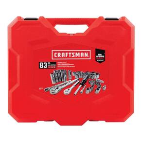 CRAFTSMAN Conjunto de ferramentas mecânicas, SAE/Metric, unidade de 1/10.2 cm, 83 peças (CMMT12021) - Resistência à corrosão: os conjuntos de soquetes têm acabamento cromado polido completo - Balanço mínimo do arco: catracas de 72 dentes em 2 tamanhos de acionamento vêm com conjunto de soquete métrico e padrão - Torque aumentado: conjunto de soquetes de 6 pontos com fixador - Permite fácil armazenamento da ferramenta: estojo durável moldado por sopro - IDENTIFICAÇÃO RÁPIDA DE TAMANHO: Marcações grandes - Atende ou excede as especificações ASME - Garantia vitalícia total, consulte a seção "Garantia e suporte" abaixo para obter detalhes completos