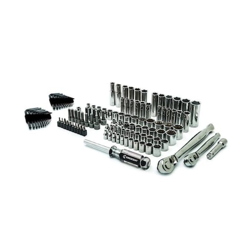 Crescent 121 peças 1/10.2 cm e 3/20.3 cm Drive 6 e 12 pontos Standard & Deep SAE/Metric Mechanics Tool Set - CTK121