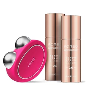 Pacote FOREO Age-Defying Bear - Dispositivo facial Bear Microcurrent + 2 x sérum condutor de 1 fl.oz. - Massageador facial antienvelhecimento - Conjunto de ferramentas de cuidado de pele para um lifting facial instantâneo - Fúcsia - Conjunto de lifting facial