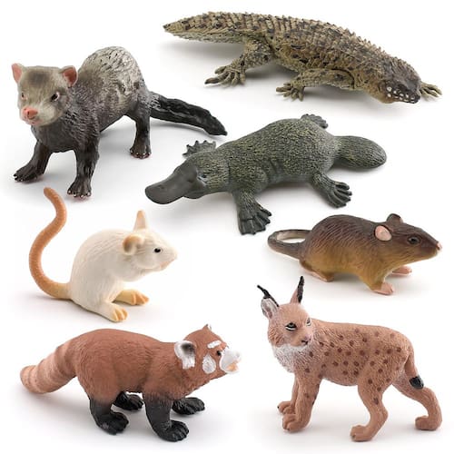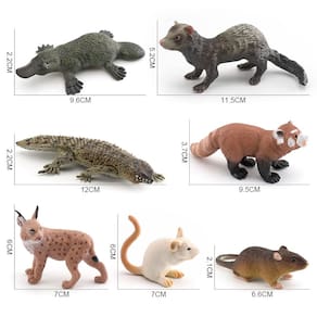 Conjunto de 7 peças de bonecos de animais selvagens, modelos de animais em PVC, inclui lince, panda vermelho, ornitorrinco, rato e muito mais, estatuetas realistas de vida selvagem para crianças, brinquedos educativos e decorações Descrição: Material: PVC Tamanho: 2,2-12 cm, consulte a imagem para obter detalhes específicos de tamanho Peso: 250 g Características: diversas figuras de animais: este conjunto inclui estatuetas realistas de animais selvagens como lince, panda vermelho, ornitorrinco, rato e muito mais, com recursos detalhados que se assemelham aos da vida real. Material de PVC durável: Feitos de PVC não tóxico de alta qualidade, esses bonecos são seguros para as crianças brincarem, além de serem resistentes o suficiente para exibição duradoura ou para fins educacionais. Educativas e divertidas: ideais para as crianças aprenderem sobre a vida selvagem, essas estatuetas promovem a curiosidade e ajudam a promover a compreensão de diferentes animais de todo o mundo de uma forma divertida e envolvente. Decorações versáteis: essas figuras são perfeitas para uso como cobertura de bolo, parte de decoração de festas com temas naturais ou como ferramentas educacionais em salas de aula e vitrines domésticas, adicionando um toque realista a qualquer ambiente. Tamanho perfeito para brincar e exibir: cada boneco varia de 2,2 cm a 12 cm, tornando-o o tamanho perfeito para as mãos das crianças ou para exibição em ambientes educacionais, salas de aula ou residências. O que vem na caixa: 7 x Conjunto de figuras de animais selvagens