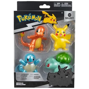 O Pokémon Select Metallic Battle Pack é um conjunto de quatro figuras de aproximadamente 7,5 cm de altura com acabamento metalizado, trazendo Pikachu, Bulbasaur, Squirtle e Charmander em versão colecionável. As figuras são produzidas em plástico rígido, com pintura especial de efeito metálico, realçando contornos e detalhes inspirados no design da série animada Pokémon.