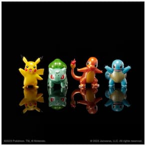 Componentes inclusos: 1 figura Pikachu, 1 figura Bulbasaur, 1 figura Squirtle, 1 figura Charmander