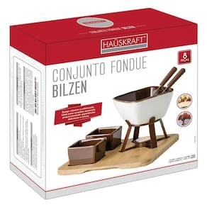 Conjunto De Fondue Bilzen 8 PeçasEm especial para você que aprecia uma boa comida e momentos de prazer com amigos e familiares foi feito esse conjunto de fondue com 8 peças. Com caçarola em porcelana ideal para preparo de fondue de queijo ou chocolate.Informações adicionaisItens inclusos: 1 Panela: 10,5 x 10,5 x 6cm 1 Suporte: 10 x 10 x 6cm 2 Potes pequenos: 6 x 6 x 4cm 1 Base: 20 x 20 x 1cm 2 Garfos: 14 x 1,2 x 1,2cm 1 Vela: 4 x 4 x 1,5cmMarca: Hauskraft Capacidade: Panela: 300ml Potes pequenos: 70ml (cada)Validade: IndeterminadaPeso aproximado: 920gComposição: Aço inox, Cerâmica, plástico, parafina, bambu e metalImagens meramente ilustrativas