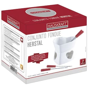 Em especial para você que aprecia uma boa comida e momentos de prazer com amigos e familiares foi feito esse conjunto de fondue com 7 peças. Com caçarola em porcelana ideal para preparo de fondue de queijo ou chocolate.