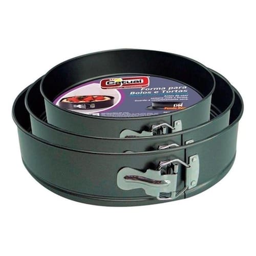 Ideal para o preparo de tortas, bolos e até mesmo salgados. Seu fundo removível é indispensável na hora de preparar aquele delicioso cheesecake para a família. Características: Conteúdo da embalagem: jogo de 3 formas com fundo removível