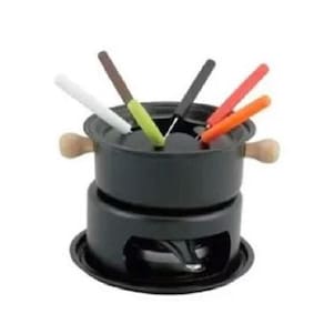 Conteúdo da embalagem: 1 panela esmaltada 16 cm 1 queimador 1 prato 1 base 1 separador de garfos 6 garfos