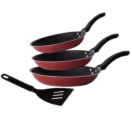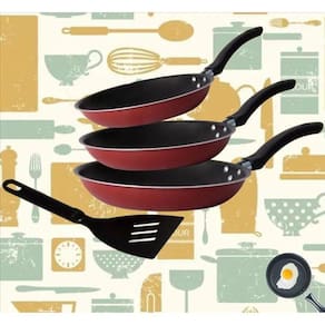 Conjunto Jogo de Frigideiras 3 Peças Vermelha Antiaderente Teflon Espátula Conjunto com 3 frigideiras da Linha Rouge Vermelha com antiaderente teflon 5 camadas, acompanha uma espátula. não gruda e facilita a limpeza, podem ir ao fogão a gás, elétrico, de cerâmica. podem ser lavadas em lava louças e ir à geladeira. NÃO PODEM ser levadas ao forno de microondas. Material - Alumínio com revestimento antiaderente teflon 5 camadas Cor: Vermelho externo / Preto Interno Tens Inclusos:1 Frigideira 18 Cm1 Frigideira 20 CM1 Frigideira 22 CM1 espatula de Nylon Instruções de uso e conservação: Antes de usar, lave com água quente, esponja macia e detergente neutro, em seguida, unte com óleo ou gordura e leve ao fogo médio por 3 minutos, após isso, lave novamente o utensílio e estará pronto para o uso.Nunca use esponja de aço ou objetos metálicos. Os revestimentos antiaderentes aplicados nos produtos Marcolar carregam o selo verde PFOA FREE, que garante a ausência de elementos nocivos à saúde em sua composição. Além disso, todos os resíduos são corretamente reciclados e destinados de forma responsável e sustentavel . A espátula em nylon não risca e garante maior durabilidade às suas frigideiras Marcolar.