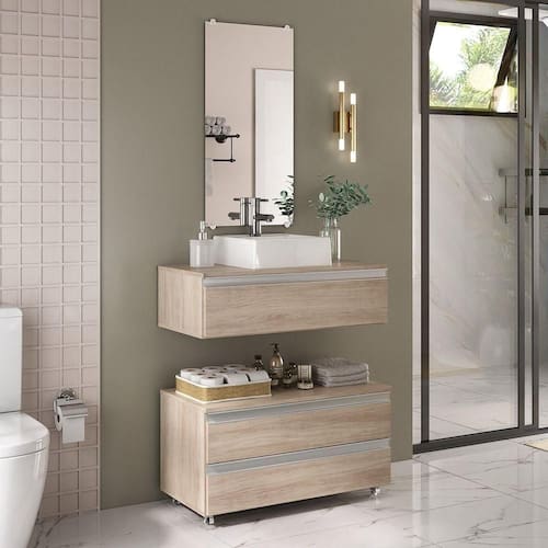 KIT BANHEIRO CRETA 80CM (INCLUI: 02 Armários + Cuba Sobrepor + Espelho)