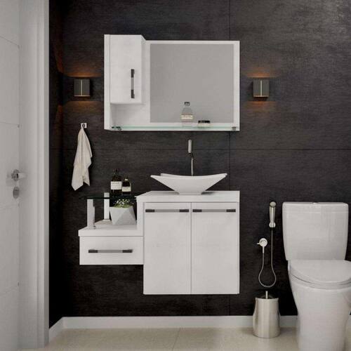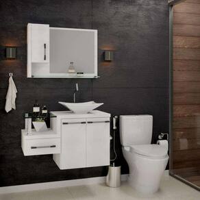 Que tal o Conjunto para Banheiro Wood?Seja para o lavabo ou para a suíte, o Conjunto Wood tem cantinhos ideais para apoiar tudo o que você precisa no dia a dia, desde itens cosméticos e de higiene pessoal até toalhas e porta-objetos - além disso, o espelho será um grande aliado para você dar uma conferida no look do dia e, claro, fazer sua rotina de cuidados diários. Com estrutura clássica e coloração tradicional, o design é um show à parte, já que oferece versatilidade para a decoração, te ajudando a deixar a casa do seu jeitinho. Ah, o conjunto já acompanha cuba, que o torna ainda mais completo, pois é só montar, posicionar bem no espaço e aproveitar toda essa praticidade. É ou não é perfeito para o seu lar-style?