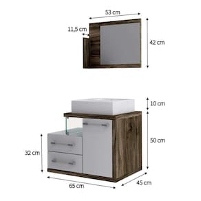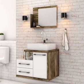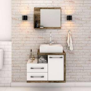 que tal o conjunto para banheiro wood?seja para o lavabo ou para a suíte, o conjunto wood tem cantinhos ideais para apoiar tudo o que você precisa no dia a dia, desde itens cosméticos e de higiene pessoal até toalhas e porta-objetos - além disso, o espelho será um grande aliado para você dar uma conferida no look do dia e, claro, fazer sua rotina de cuidados diários. com estrutura clássica e coloração tradicional, o design é um show à parte, já que oferece versatilidade para a decoração, te ajudando a deixar a casa do seu jeitinho. ah, o conjunto já acompanha cuba, que o torna ainda mais completo, pois é só montar, posicionar bem no espaço e aproveitar toda essa praticidade. É ou não é perfeito para o seu lar-style?