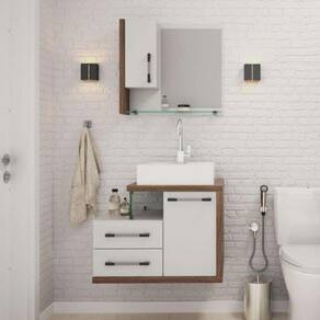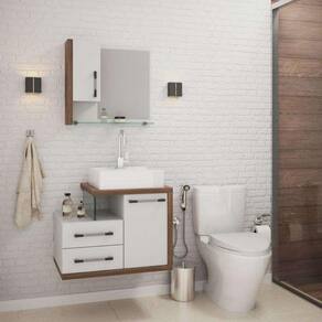 Que tal o Conjunto para Banheiro Wood?Seja para o lavabo ou para a suíte, o Conjunto Wood tem cantinhos ideais para apoiar tudo o que você precisa no dia a dia, desde itens cosméticos e de higiene pessoal até toalhas e porta-objetos - além disso, o espelho será um grande aliado para você dar uma conferida no look do dia e, claro, fazer sua rotina de cuidados diários. Com estrutura clássica e coloração tradicional, o design é um show à parte, já que oferece versatilidade para a decoração, te ajudando a deixar a casa do seu jeitinho. Ah, o conjunto já acompanha cuba, que o torna ainda mais completo, pois é só montar, posicionar bem no espaço e aproveitar toda essa praticidade. É ou não é perfeito para o seu lar-style?