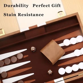 Conjunto de jogos de tabuleiro CAYOULR Gamão, é um jogo muito popular para dois jogadores. Qualquer criança ou adulto pode desfrutar deste gamão atraente e divertido. 2. O jogo de gamão de mesa que pode estimular muito o interesse de crianças e adultos, exercitar suas habilidades de pensamento e reação, é adequado para jogadores iniciantes e avançados e é perfeito para viagens, ao ar livre, família, noite de jogos, festas ou reuniões de férias. Aqui estão os 4 principais benefícios dos jogos de tabuleiro: 1. Cria mais felicidade. 2. Oferece às crianças uma ótima oportunidade de aprendizagem precoce. 3. Aproxima as pessoas e fortalece os relacionamentos. 4. Ensina como definir metas e ser paciente. - Jogo de tabuleiro clássico – Este conjunto clássico de gamão é o conjunto perfeito para jogadores iniciantes e avançados e inclui tudo o que você precisa para jogar; perfeito para noites de jogos, festas ou reuniões de feriado, também é um ótimo presente de Natal. - Qualidade premium – nosso conjunto de gamão é feito de materiais de alta qualidade, incluindo uma capa de couro premium e peças de jogo de alta qualidade. Com campo de jogo de feltro, pontas de couro sintético e peças para damas e acessórios, interior macio e decoração de couro sintético com costura inteligente, superfície lisa, não arranha e faz barulho fácil. - Estimula o interesse e a atmosfera perfeita – o jogo de gamão na mesa pode estimular muito o interesse de crianças e adultos e exercitar suas habilidades de pensamento e reação. Se você tem uma pessoa especial em sua vida que ama jogos de tabuleiro clássicos de estratégia para adultos, ela ficará encantada quando você surpreendê-los com este conjunto de gamão. - TAMANHO PERFEITO E PORTABILIDADE - Conjunto de tabuleiro de xadrez com design de mala de couro sintético, tamanho grande perfeito: 38 cm, fechado: 38 x 24 x 5 cm, aberto: 48 x 37 x 2,5 cm, que pode ser facilmente dobrado. E com fivela de metal de alta qualidade e alça de couro confortável, é leve, fácil de armazenar e conveniente. - Ótimos presentes e cliente em primeiro lugar – Este é o jogo de tabuleiro mais popular e criativo deste ano, você pode dar de presente para sua família, amigos, etc. e aproveite o maravilhoso tempo de jogo juntos. A satisfação do cliente é nossa primeira prioridade. Se você tiver alguma dúvida, sinta-se à vontade para entrar em contato conosco e estamos dispostos a ajudá-lo!