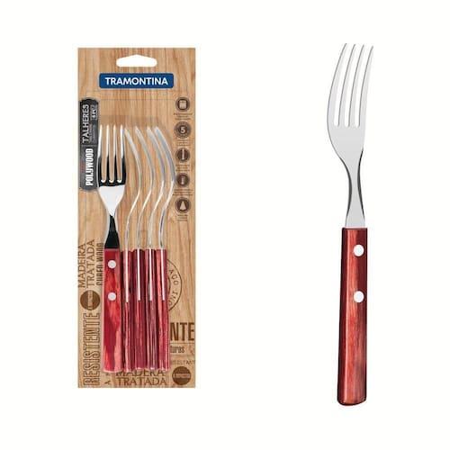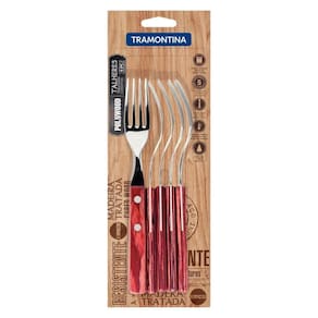 Conjunto de Garfos de Mesa Tramontina 6 Peças em Aço Inox e Cabos em Madeira Polywood Vermelho Tramontina -